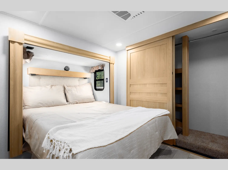 They are created with the perfect balance of size, space, features, and luxury. The automatic electric level up system will make setting up easier and the underbelly armor will protect your unit from road debris. The models come with two 15k BTU A/C units, heated holding tanks, hitch light, and many more convenient camping features.