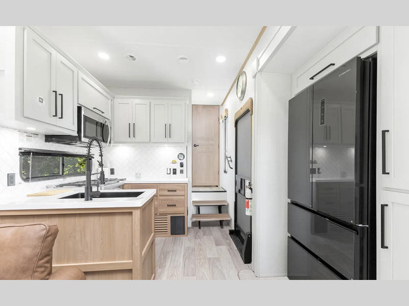 Sleeps 7 Slides 5 Int Height 7 ft Furnace BTU 40000 btu Number Of Bunks 3 Available Beds King Refrigerator Type 12V Refrigerator Size 16 cu ft Cooktop Burners 3 Number of Awnings 1 Axle Weight 7000 lbs LP Tank Capacity 30 Lbs. Water Heater Type On Demand Tankless AC BTU 30000 btu TV Info 50" LR Smart TV Awning Info 15' Electric awning with LED light strip Axle Count 2 Number of LP Tanks 2 Shower Type Standard Electrical Service 65 amp Similar Floorplans
