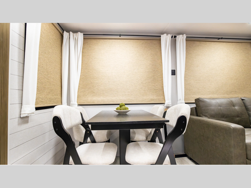 Each destination trailer is built with a durable heated and enclosed Accessibelly, along with slide out awning toppers and a 7' slide out height in the living room so you can relax in comfort. There are JBL interior/exterior speakers, 4K awning blade lighting, and an on-demand tankless water heater to name a few more convenient features.